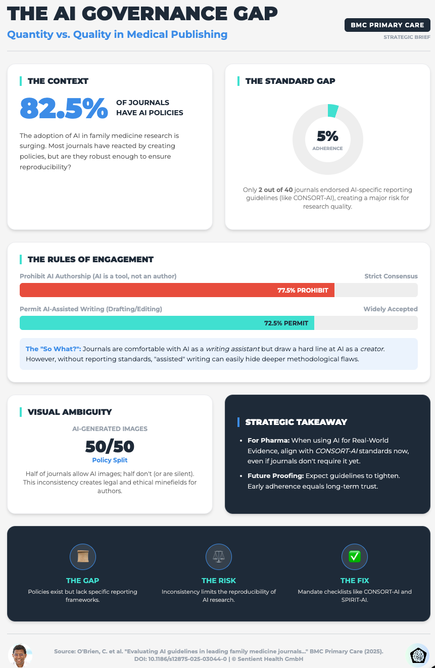 • Summary: A shocking cross-sectional study revealing that only 5% of leading journals endorse AI-specific reporting guidelines like CONSORT-AI. The publishing landscape is failing to standardize AI governance.