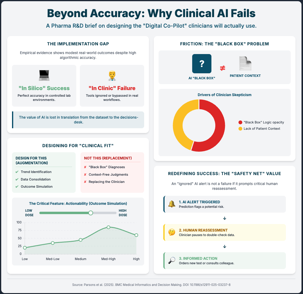 Even if your AI is FDA-approved, it’s useless if your clinical teams won’t use it. Clinicians reject AI when it overreaches or lacks real-world context.